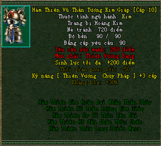 Danh sách trang bị hoàng kim môn phái max anh em tham khảo, lưu ý hình ảnh chỉ mang tính chất minh họa, khi anh em mở ra sẽ ngẫu nhiên thuộc tính.