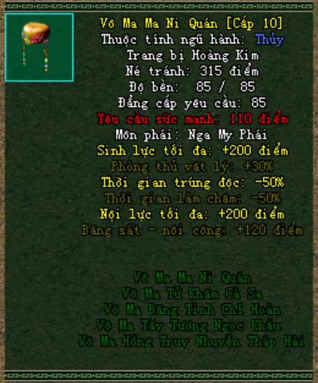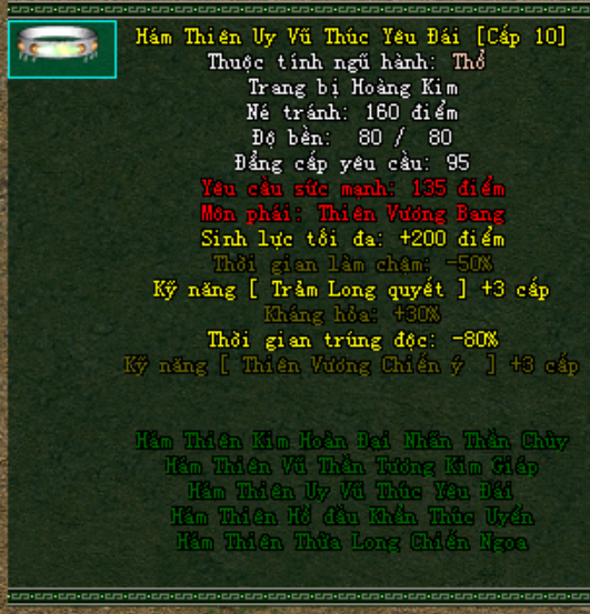 Danh sách trang bị hoàng kim môn phái max anh em tham khảo, lưu ý hình ảnh chỉ mang tính chất minh họa, khi anh em mở ra sẽ ngẫu nhiên thuộc tính.