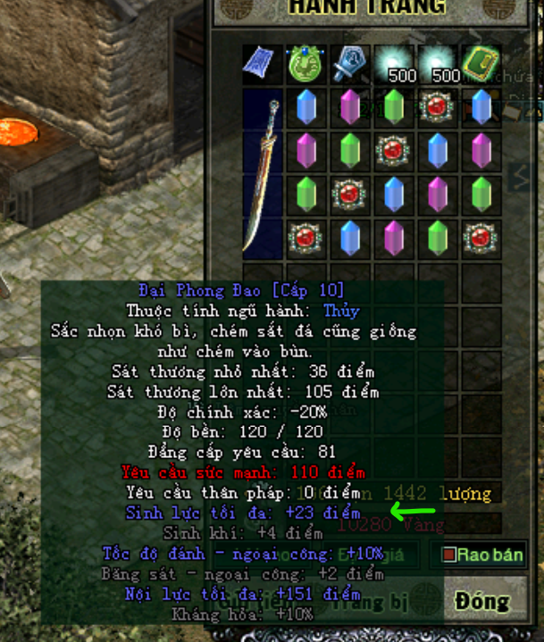 Sinh lực đã từ 23 lên 92, các dòng còn lại giữ nguyên