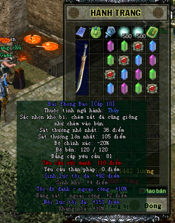 Lấy món vũ khí muốn trùng tu, xem thông số